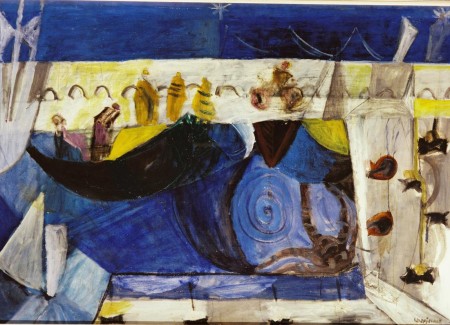 Le tele della pesca, il cui primo sbocco riccamente cromatico e fantasmagorico è rappresentato nel 1953 da Pesca con le lampare e dal Porto di Antibes, prototipo di una lunga serie di vedute a volo d’uccello, si confrontano con i grandi nudi. Questi partono dal Nudo disteso del 1951 della collezione Boschi della GAM, e dalla modella Nude, ultimo omaggio in verticale a Modigliani e nel contempo prototipo di infinite variazioni lungo tutta la vita dell’artista.