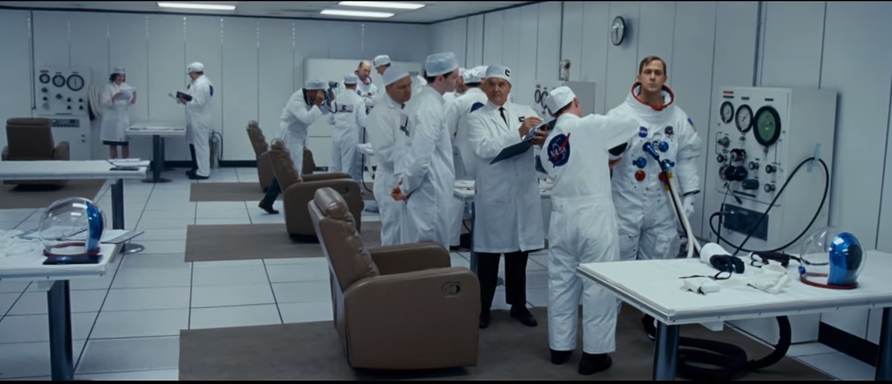 relazioni umane (amore e amicizia in primis) che formano il vissuto dei protagonisti e del loro entourage. Il sottile filo che unisce i due film a 50 anni di distanza si fa sempre più evidente con lo scorrere dei minuti e acquista particolare rilievo nella sequenza della “passeggiata” sul suolo lunare con il minuscolo giocattolino fanciullesco portato di nascosto dal protagonista. Qui il braccialetto della figlioletta morta, là il topino di plastica che diventa un’incredibile bussola spaziale e salva l’eroe dal naufragio cosmico. Proprio la parte finale è la più interessante del film di Chazelle. Il primo e finora unico a rendere in modo credibile e suggestiva la scenografia lunare. Anche perché mette finalmente a tacere l’insopportabile e ripetitiva colonna sonora. A quale scopo far risuonare arpe&violini nello spazio se non far rivoltare nella tomba il povero Stanley Kubrick? La prima ora abbondante ci dà invece la sensazione di un “già visto” di disneyana memoria che rasenta lo stucchevole. Qui siamo a Casa Spilberg, ma la differenza col papà di Topolino è ormai impercettibile. Il cast è perfetto, con Ryan Goslin dal fisico e volto giusti per il signor nessuno Armstrong passato alla storia quasi suo malgrado e una bella corona di comprimari che tengono botta in ogni scena.
