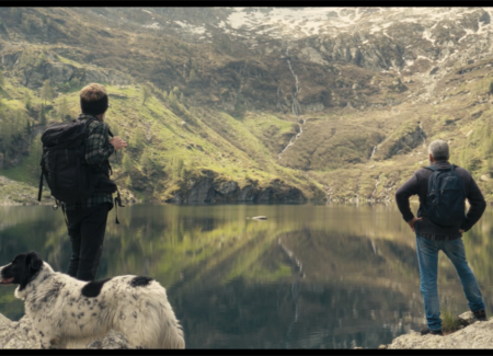 Nel primo film da regista, Cognetti si muove di rifugio in rifugio, in compagnia soltanto del fedele Laki. Si sposta sulle pendici rocciose, tra la Val d’Ayas e la Val di Gressoney alla ricerca delle radici che legano persone e territorio