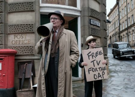 Una delle tante, stravaganti campagne messe in atto da questo donchisciotte in tweed finite tutte, o quasi, dietro le sbarre delle patrie galere e, di ritorno a casa, con infiniti battibecchi coniugali con la moglie Dorothy. Ed il punto è proprio questo: nella messa in scena della sua storia sembra che Michell, per il suo personaggio, più che al “vero” Bunton si sia liberamente ispirato a Mr Bean aggiungendovi un po’ di Wallace&Gromit (senza Gromit) e un po’ di Andy Capp con Florrie (Flo). D’altra parte Michell non è Kean Loach e le istanze sociali che spingono all’azione Mr Bunton rimangono un po’ in ombra. O meglio: sotto i riflettori vengono piuttosto mostrate le stranezze che tali istanze determinano nei comportamenti dell’uomo.