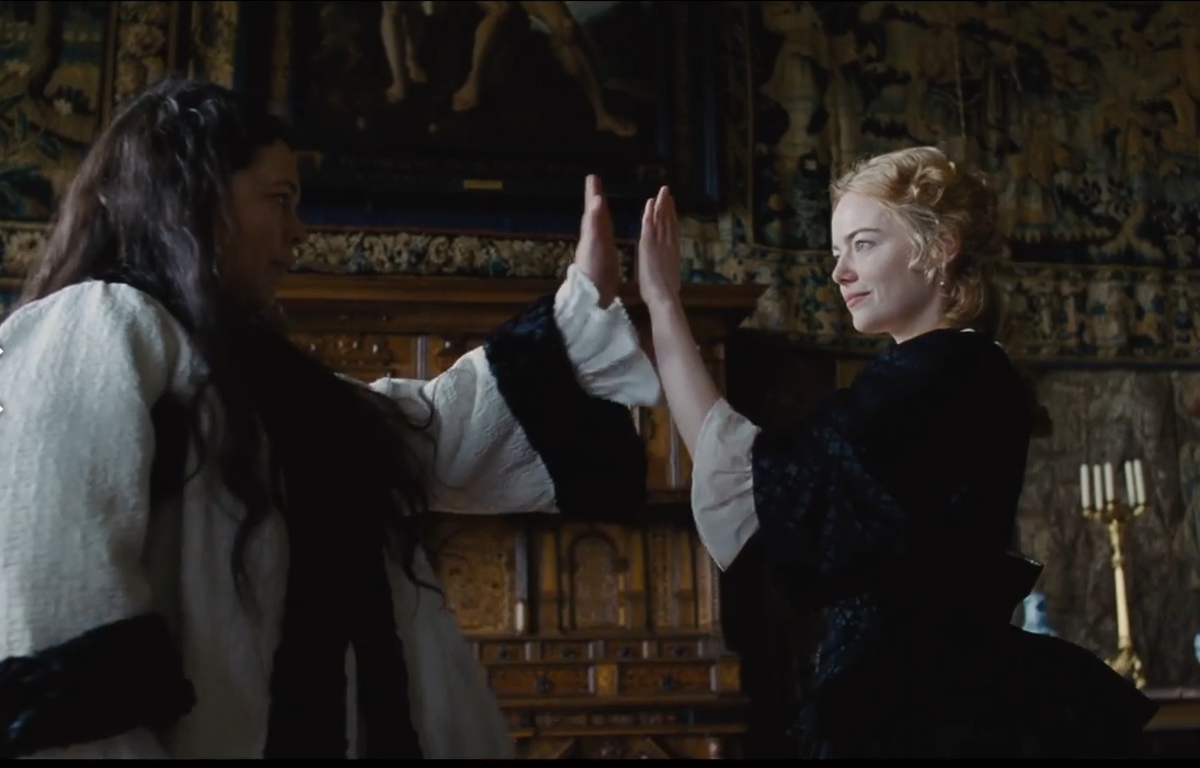 Tutte queste vicende nel film sono solo accennate, restano sullo sfondo e anche un po’ oscure per un pubblico non anglosassone perché in primo piano, come è ormai consuetudine non solo cinematografica, vengono i personaggi che la storia (quella dei libri) lascia appunto nell’ombra. È il caso, qui, di Sarah Jennings (1660-1744), moglie di John Churchill, duca di Marlborough nonché antenato del più noto sir Winston e di Lady D. Sarah è, appunto, la donna nell’ombra della regina Anna ovvero l’eminenza grigia della corte proprio per la sua influenza personale sulla sovrana. In altri tempi, una così si chiamava, appunto, la favorita anche se, di solito, era il regnante maschio ad avvalersi di tali persone. Nella vicenda messa in scena da Lanthimos il rapporto a due tra regina e favorita si complica per una terza presenza che abilmente si insinua tra le due: Abigail Hill (1670-1734), parente povera di Sarah entrata a servizio di quest’ultima dal gradino più basse della gerarchia domestica. Gerarchia che però la giovinotta scala con rapidità fulminea sfruttando la propria bellezza, intelligenza e cultura (compresa quella medica), ma sfruttando soprattutto le debolezze e i vizi altrui. Nonché applicando all’ennesima potenza gli stessi insegnamenti e gli esempi ricevuti dalla più ricca e altolocata parente. Fino a soppiantarla nel cuore della sovrana. Perché, si sa, i favori, specialmente dei potenti, sono quanto di più labile esista al mondo. Ieri come oggi. E per tutti gli arrivisti, Abigail compresa. Dicevamo del quadro storico che à appena accennato perché la sceneggiatura punta dritto alla messa in scena dei caratteri dei personaggi. Specialmente del “triangolo” femminile Anna, Sarah e Abigail, indagato come oggi farebbero solo le riviste di gossip più sfrenato.