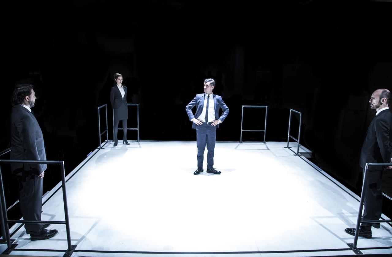 Gli spettatori, seduti ai quattro lati del ring, assistono all’incalzante ‘pestaggio’ psicologico. La distruzione di Thomas si compie davanti agli occhi del pubblico che, dapprima contagiato dallo sdegno, potrebbe assuefarsi alla cattiveria, all’arrivismo, alla violenza del linguaggio.