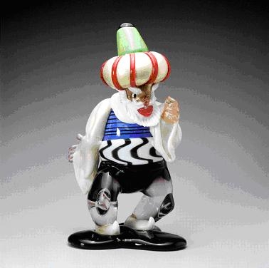 Sono piccole, deliziose immagini dal significato quasi ludico, esercizi di maestria creativa, “miniature” meravigliose impastate di vetro e di fantasia: “Ali Babà”, “Pulcinelle”, “Arlecchini”, personaggi della Commedia dell’Arte, ma anche deliziosi nudini femminili e giocose allegorie o rappresentazioni dei personaggi della Venezia d’un tempo, come gli immancabili “Moretti”.