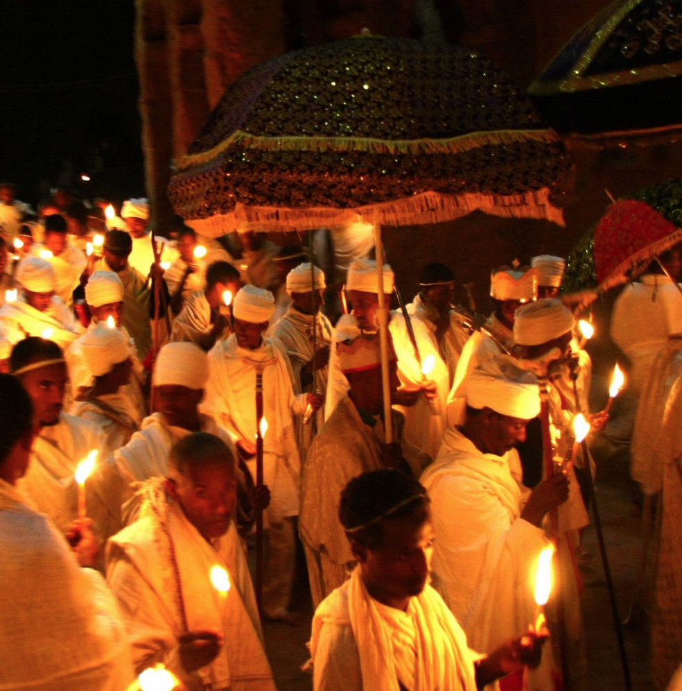 Nel 2018 si festeggia il 19 Gennaio e le celebrazioni iniziano la sera della vigilia (18 Gennaio) e continuano per tutta la notte, con un susseguirsi di interminabili processioni, canti e danze fino all’alba. Durante le processioni le sacre Tabot, le tavolette lignee realizzate a immagine di quelle dell’Arca dell’Alleanza e conservate nel Maqdas (il Sancta Sanctorum, la parte sacra e inaccessibile), dalle varie chiese vengono traslate in prossimità di punti d’acqua che simboleggiano la fonte battesimale. Le Tabot, ricoperte di tessuti damascati, vengono riposte all’interno di una tenda e vegliate tutta la notte dai preti bardati di paramenti sacri e dai pellegrini avvolti nei bianchi shamma (teli di cotone tradizionali).