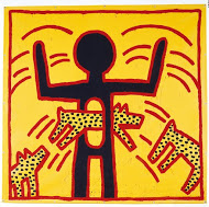 Keith Haring ricoprì una posizione di spicco all’interno della comunità artistica newyorkese, nella quale pittori, artisti e musicisti esprimevano la propria creatività attraverso l’influenza della “cultura di strada”. Haring trasse ispirazione da graffiti, fumetti, musica, danza, arti figurative e cultura popolare, concependo l’arte come diritto e proprietà pubblica. La criticata commercializzazione delle sue opere attraverso stampe su magliette, adesivi e etichette, costituì parte integrante della sua filosofia di “arte per tutti”. L’influenza di Haring sulla sua generazione fu enorme e, nonostante una carriera di un solo decennio, l’effetto del suo repertorio artistico è tuttora inalterato.