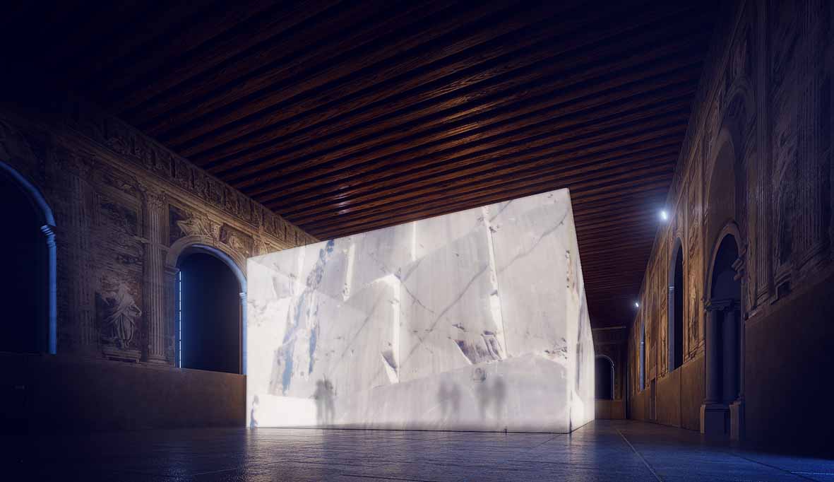 Ad accogliere gli ospiti, al pianoterra della Scuola Grande della Misericordia, sarà una monumentale installazione site-specific di Fabrizio Plessi, un “omaggio” al grande Canova, un’opera che vuole simboleggiare il viaggio nella mente dell’artista. Dopo l’immersione nei colori e nelle forme dell’opera di Fabrizio Plessi, la visita alla mostra prosegue al piano superiore, dove lo spazio è connotato da un enorme blocco di marmo, bianco come quello di Carrara, realizzato in architettura tessile. In questo spazio, in forte dialogo architettonico con la sala della Scuola Grande della Misericordia, sono allestite diverse aree di approfondimento che permetteranno al pubblico di esplorare l’intera vicenda canoviana, grazie a un percorso, intimo e spettacolare al tempo stesso. Ad accompagnare, passo a passo, l’ospite sarà la voce narrante di Adriano Giannini, chiamato anche a leggere alcune delle lettere del giovane Canova. La colonna sonora originale è affidata al violoncello di Giovanni Sollima. La direzione artistica è del maestro Luca Mazzieri, autore e regista di film d’arte, in collaborazione con Alessandra Costantini, architetto e progettista.