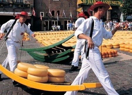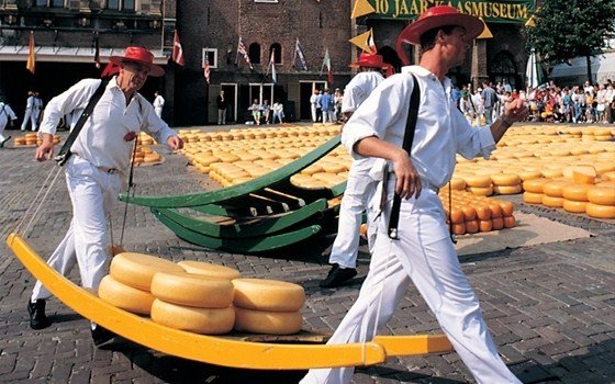 IL RITO DEL FORMAGGIO Il giovedì ad Alkmaar i negozi restano aperti fino a sera inoltrata perché il giorno dopo, in piazza Waagplein, si tiene il tradizionale Mercato del formaggio. Con le stesse modalità consolidate nei secoli, da quando tutto è iniziato, nel 1365. La mattina presto le oltre 2.200 forme, equivalenti a 30mila kg, vengono collocate in lunghe file e gli ispettori e i commercianti controllano che siano perfette alla vista, in attesa dei compratori. A partire dalle 10 si entra nel vivo delle contrattazioni e le forme prendono il via, spostate da personaggi caratteristici di questo mercato: i portatori dal tipico abito bianco con le loro “slitte” sorrette da cinghie a spalla. Anche i collocatori, i tiratori e i responsabili della pesatura sono figure molto importanti. Tutti appartengono a una corporazione che mantiene viva la tradizione. Un vivace spettacolo da non perdere. Inoltre anche Alkmaar è una tipica “città di canali” olandese con magnifici edifici, bei negozi e molti locali: dai caffè d’atmosfera ai bar più trendy e moderni. Nella gotica cattedrale di San Lorenzo può poi capitare di assistere a un concerto d’organo su uno dei due magnifici strumenti del XVI sec. conservati fino a oggi.