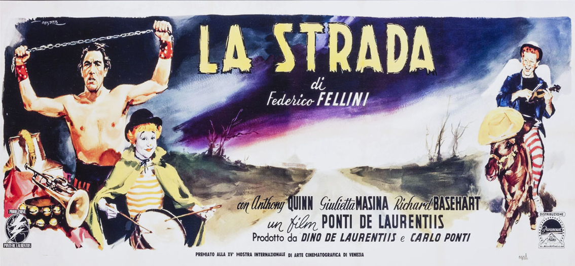 Scritto in collaborazione con Ennio Flaiano, lo Sceicco bianco inaugurò lo stile unico e personale di Fellini – una sorta di fantarealismo – che raccontava sogni e conquiste dell’Italia passando per film come I vitelloni, pellicola dedicata all’Italia dell’industria, che consacra il regista italiano nell’olimpo del cinema mondiale, confermato poi con La strada, del 1954, lucido ritratto dell’Italia postbellica, e con Le notti di Cabiria del 1957; dal Paese sognante de La Dolce Vita (1960) all’Italia moderna, trionfante e vivace di 8 ½ (1963), da quella lisergica e sperimentale di Giulietta degli spiriti (1965) fino a quella decadente, violenta e fragile di Amarcord (1973) forse l’apogeo dell’autobiografismo felliniano, della sua memoria favolosa e rivelatrice. Con le opere successive (Il Casanova di Federico Fellini, 1976, Prova d’orchestra, 1979, La città delle donne, 1980, E la nave va, 1983, Ginger e Fred, 1986, Intervista, 1987) le allegorie del presente si fanno più angosciate e, in qualche modo, manierate, per poi chiudersi con La voce della Luna (1990), in cui Paolo Villaggio e Roberto Benigni si fanno portavoce di un messaggio di silenzio necessario per fronteggiare una contemporaneità sempre più arrogante, prologo della morte di Fellini.