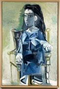 La presenza di Jacqueline e la sua giovinezza accelerano il ritmo creativo di Picasso. Raffigurata con il suo profilo ieratico, ritto su un collo interminabile (Jacqueline aux fleurs, 1954) o perfettamette rappresentativa della bellezza classica (Jacqueline aux jambes repliées, 1954), abita l’opera del marito con tutta se stessa (L’atelier de Californie, 1956). I ritratti di Picasso vanno oltre la nozione stessa di somiglianza per tendere a una sorta di poetica metaforica della personalità di tutti i suoi modelli.