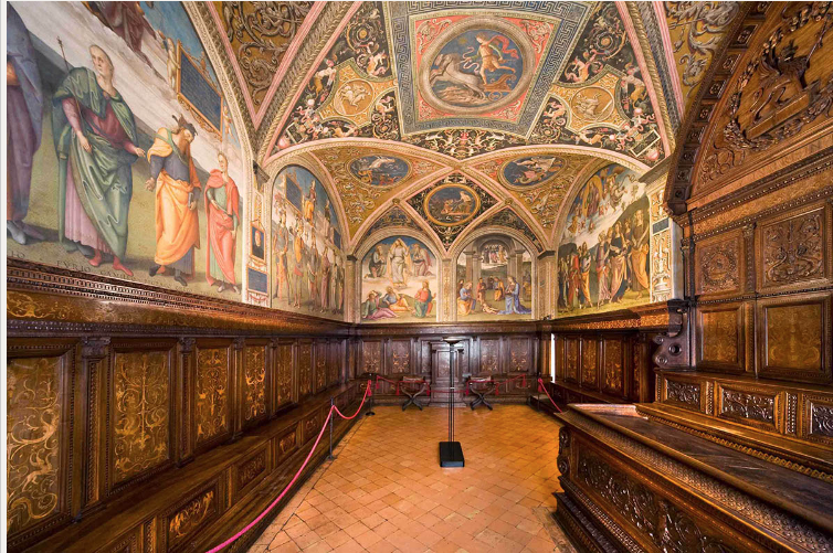 In realtà i progetti e gli eventi relativi all’ importante anniversario hanno già impegnato la città per tutto il 2023 e dato un forte impulso alla valorizzazione del suo patrimonio culturale, costituito dalle opere del grande maestro; il successo che ne è derivato ha successivamente indotto l’ente Fondazione Perugia al prolungamento della mostra preparata nell’antica residenza gentilizia del centro storico. Questa interessante notizia costituisce l’occasione per rivedere e approfondire la conoscenza di un’importante opera che il pittore umbro realizzò nella Sala delle Udienze del Nobile Collegio del Cambio di Perugia. Si tratta di un ciclo di affreschi il cui messaggio ammaestra -specialmente in un periodo tanto confuso e disorientante come il nostro- nel discernimento e nella comprensione circa le virtù e le qualità dell’uomo retto e onesto. Dunque non resta che immergersi, anche se brevemente, nel capolavoro che il grande artista dipinse in un periodo storico nel quale erano indubbi e spiccavano con grande chiarezza i requisiti richiesti agli uomini probi.