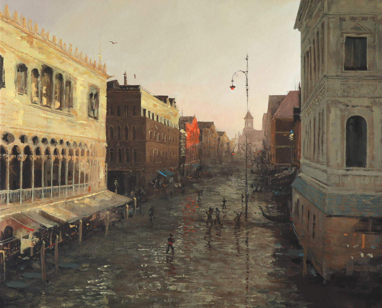 In apertura: Alberto Rodríguez Serrano “Sueños de Venecia”. Acrilico e olio su tela, 2024, 120 x 80 x 2 cm