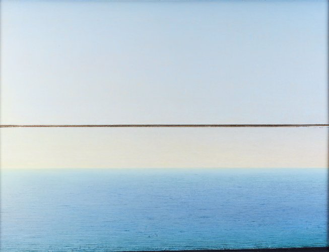 Non c’è mai stato un artista che sia riuscito a dare la dimensione della luce e della relazione tra l’azzurro, il mare e il cielo come Piero Guccione. Egli è stato tra i maggiori protagonisti della pittura italiana del secondo Novecento. Nato nel 1935 a Scicli, ultima propaggine meridionale della Sicilia, e recentemente scomparso, per oltre quaranta anni ogni mattina Guccione ha guardato il mare cercando di coglierne le variazioni, non per semplice descrittivismo, ma per trovarci sempre l’anima dell’uomo. “Mi attira l’assoluta immobilità del mare, che però è costantemente in movimento”. È questa la grande impresa che quotidianamente ha affrontato: guardare il mare con il desiderio di fissare qualcosa in continuo movimento. Guccione ha portato la sua ricerca ai limiti dell’astrazione, restando tuttavia ben ancorato alla realtà. Persino nelle ultime opere dove la rarefazione è condotta all’estremo e il senso di vuoto diventa qualità principale, egli vuole e sa rimanere pittore di un’antica tradizione radicata nel dato realistico, figurativo.