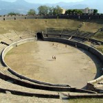 L’Anfiteatro, in ultimo, il più antico edificio di questo tipo al mondo, collocato nell’angolo sud-orientale della città, ospitava spettacoli di natura violenta – combattimenti tra uomini e uomini e tra questi e bestie feroci -, rappresentazioni amate dal popolo romano.