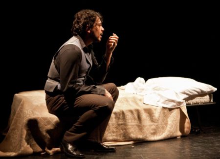 Il personaggio sulla scena si apre dunque al pubblico, in una dichiarata scissione morale e nell’insolubile dubbio che la accompagna; vivisezionando senza sconti ogni sfumatura, ogni impulso, ogni contrazione dell’anima e del corpo umano, si mette a nudo e chiede ogni sera comprensione e condivisione, o forse anche rifiuto, commiserazione.