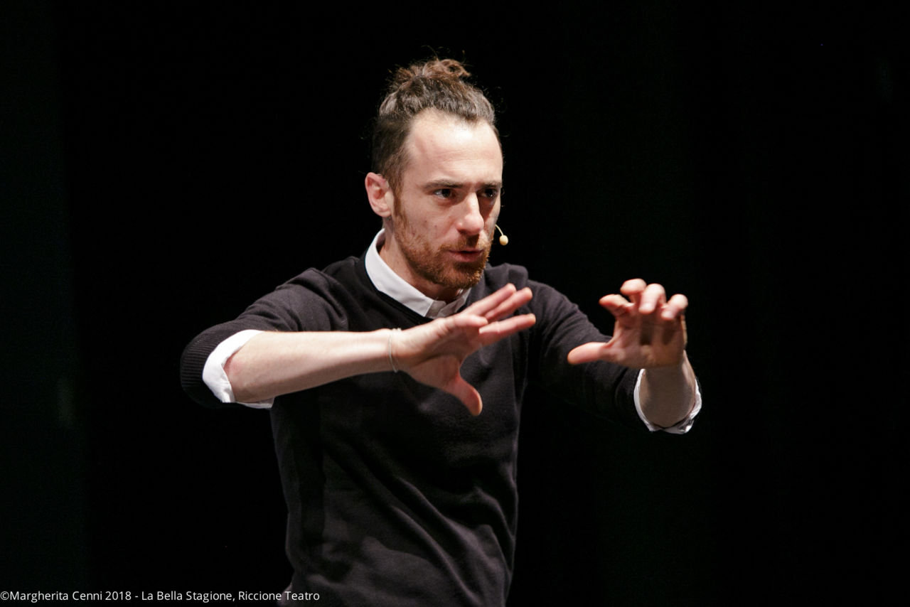 “Uno spettacolo provocatorio che ci mette in discussione come pubblico. Cosa stiamo vedendo? A cosa applaudiamo? Chi è il personaggio che abbiamo di fronte? Dove ci sta portando? Un esercizio di manipolazione dagli esiti imprevedibili .Per la prima volta il teatro si fa virtuale: indossato il visore e le cuffie, verrete catapultati in quella sala e sarà come essere lì”. Elio Germano