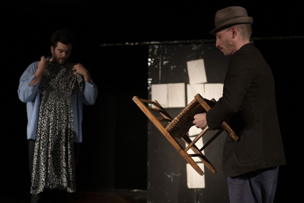 Per Ion, a teatro Franco Parenti dal 12 al 17 marzo, pochi colori in scena e pochi oggetti per raccontare lo spaccato di vita dei due fratelli, Giovanni e Paolo, divisi e segnati da un passato che li ha condizionati profondamente. Le loro giornate “grigie” trascorrono tra litigi e sorrisi che inevitabilmente li fanno tornare in maniera ossessiva al loro passato, ai loro sfocati ricordi di bambini, alla presenza soffocante di un padre e alla colpa grave di uno dei due. Tale colpa forse è origine e causa di una famiglia in disfacimento e ciò ne determinerà inevitabilmente il loro destino. Le parole e i gesti vivono all’interno di una cornice che è casa, lavoro, strada – finanche il cimitero – ma non è fino in fondo nessuno di questi luoghi.