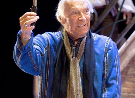 Giorgio Albertazzi ha fatto del “Mercante” un perfetto ibrido che sembra ora scritto da Strindberg e ora da Sartre, passando per la lussuria di Baffo e per i giocosi azzardi di Goldoni. Ha subito capito, fin dai vagiti della luce, che qui l’alba e il mattino, (sommariamente intesi come il primordio della vita e quindi la giovinezza), e il tramonto e la sera, (da considerarsi come tenebra, come male: come Shylock), sono di fatto non distinguibili: è come se i giovani veneziani e il vecchio ebreo siano cerchi nell’acqua creati dallo stesso sasso, riflessi specchianti dello stesso corpo, della stessa vita: Shylock odia Antonio, Bassanio e la loro cricca perché vorrebbe depredare quella giovinezza che non ha più (di qui l’ossessione per la libbra di carne, che ha, di fatto, lo stesso significato dell’ossessione per l’immortalità di Faust); e Antonio e Bassanio detestano Shylock perché, in qualche modo, in lui scorgono il tramonto, il capolinea, il bicchiere rotto a fine festa che, inesorabilmente, li attende. In questo senso Shylock è Antonio; Shylock è Bassanio; Shylock è Porzia. E’ tutto ciò che sono e tutto ciò che saranno. Per questo Shylock non può essere l’ebreo rachitico, obliquo ed incartapecorito tratteggiato da Celine; anzi, è uno splendido condottiero, un ipnotico sciamano che si muove tra le calli a bordo di una stranissima zattera (così come aveva immaginato Zanzotto per un film di Fellini).