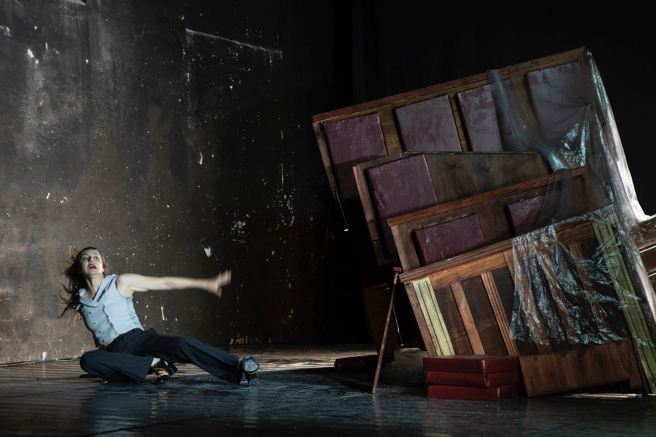 La scenografia, realizzata da Filippo Sarchielli, essenziale, desolata e volutamente sghemba è fatta di vecchi scranni parlamentari ricoperti di teli di plastica accatastati come in un naufragio: è l’immagine di un parlamento in dismissione, abbandonato dagli uomini e lasciato al suo disfacimento, come a significare la deformazione della politica che diventa metodo di sopraffazione e illegalità. Così come fu il fascismo. Simbolicamente rende bene il decadimento della qualità democratica. E restituisce in maniera plastica la situazione di questo Paese oggi.