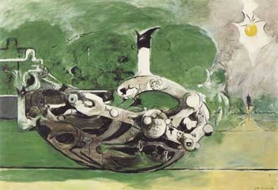 Il pittore avverte che le forme naturali che appaiono ai nostri occhi avidi di bellezza non sono che abbagli emotivi, ricostruzioni mentali imposte dal nostro bisogno di sicurezza; la realtà è destabilizzante, non prodiga di leggiadria, ma dura e meccanica, una romantica “terribilità” anti-sublime nella sua naturalistica spietatezza, minaccia reale e non soltanto turbamento letterario. Sutherland coglie questa capacità metamorfica e dipingendola affronta un’indagine sulla vita organica in cui è racchiuso il mistero dell’esistenza; analizzando le forme, ne riconosce il senso ambiguo, disturbante, crudele, ma ponendole in contrasto con l’intensità e a volte con la dolcezza cromatica, ne sa estrarre tutta la poesia e il dramma, con una stratificazione e una complessità formale che gli consentono di dar vita a un immaginario surreale a volte cupo a volte fantastico. Curiose creature nate da strane metamorfosi, dopo alcuni esempi degli anni Cinquanta, compongono il primo Bestiario realizzato nel 1968 a cui segue quello del 1979 dedicato all’opera di Apollinaire; risulta evidente la suggestione che l’artista subisce dalle figurazioni animali della scultura romanica, coi suoi esemplari prepotenti, terrestri e misteriosi, provenienti da una realtà fantastica ma non divina, simboli unitari di esperienza e invenzione.