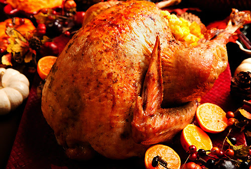 L’unica vera nota inquietante del pranzo di Thanksgiving e’ il tacchino che normalmente, in altre parti del mondo, e’ una bestia un po’ stupida, ma assolutamente innocua. Non in America dove, per qualche strana anomalia genetica, il tacchino più che essere apparentato al pollo sembra un fratello maggiore dello struzzo. Nelle settimane precedenti alla Festa del Ringraziamento i reparti carne dei supermercati si affollano di mostri preistorici, pterodattili dagli enormi seni, peso medio 20 chili, ma ne ho visti anche di piu’ grossi. Il particolare che colpisce di più nei pennuti americani sono i seni da pin up. Il fatto e’ che in America si preferisce la carne bianca e come risultato polli e tacchini esibiscono cosce rachitiche e tette ipertrofiche alla Pamela Anderson, frutto immagino, gli uni e gli altri, di sofisticati esperimenti genetici.