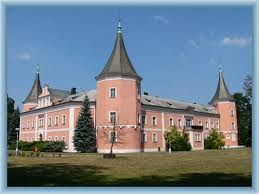 Splendido edificio dall’impronta classicista, è tra i monumenti più visitati di tutta la Boemia occidentale. A impreziosire gli interni del castello fu il celebre pittore praghese Antonin Tuvor, che affrescò alcune sale con la tecnica a secco. Pregevoli anche gli arredi originari, esempi rari di arte e artigianato in stile rococò e classico. Anche questo maniero è chiuso in un abbraccio verde da un parco rigoglioso, con tanto di padiglione di caccia.