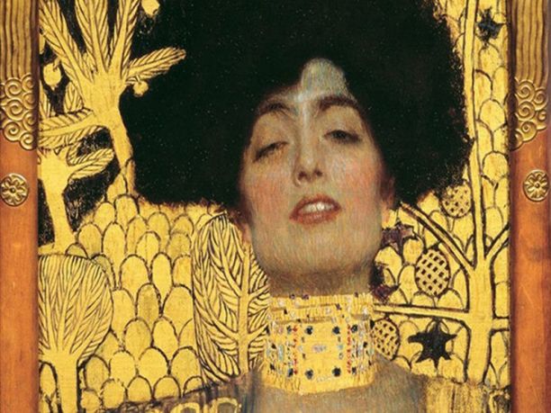 Le prime immagini mostrano il contesto in cui operò Gustav Klimt, una Vienna a cavallo tra Ottocento e Novecento in pieno fermento culturale. Nel mondo dell’arte prese piede il movimento della Secessione, che si poneva in contrasto con i canoni tradizionali stabiliti dall’Accademia. I secessionisti coltivavano il mito di un’arte totalizzante che integrasse pittura, architettura, design per cogliere con un nuovo linguaggio i mutamenti della società. La filosofia, con Schopenhauer e Nietzsche, e l’affermarsi della psicologia influenzarono questi artisti nello spingersi oltre la semplice rappresentazione del reale e nell’indagare la complessità dell’animo umano. Klimt, esponente della Secessione viennese, seppe tradurre le inquietudini della sua epoca attraverso forme fantastiche, linee allungate e colori brillanti, esprimendo un senso del mistero. Al centro della sua arte un posto di primo piano è riservato alla donna, fino a sfiorare l’ossessione. Le ritrae vestite o nude, in pose statiche o languide, in stati di calmo appagamento o di eccitazione. Klimt stesso ebbe svariate amanti di cui riconobbe 14 figli. Per lui la donna è al contempo generatrice e distruttrice, sensuale ed inquietante, ed è proprio grazie alla donna che l’uomo conosce il mondo, inabissandosi nell’inconscio ed esplorando le oscure potenze dell’eros. Tra le opere più famose, per citare un esempio, va ricordata “Giuditta”, simbolo della donna fatale: l’eroina biblica è ritratta a seno nudo mentre regge tra le mani la testa recisa di Oloferne, con un’espressione sul volto che sembra esprimere godimento per l’atto appena compiuto. Il corpo della donna si intreccia con arabeschi e forme geometriche su uno sfondo piatto e irreale. La tendenza a collocare le figure su uno sfondo d’oro (come anche nel celebre “Il bacio”) deriva da un viaggio che Klimt compì a Ravenna dove poté ammirare le vetrate medievali e i mosaici bizantini.