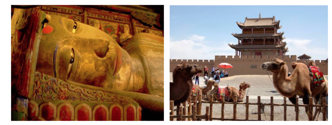 Presto al mattino viisita del Tempio del “Buddha Dormiente”, risalente alla dinastia degli Xia occidentali (1098 d.C.), che conserva un Buddha sdraiato lungo 35 m e alto 8 m. La statua, di cui colpiscono molto l’espressione serena e le forme aggraziate, rappresenta Sakyamuni attorniato da discepoli e guerrieri sacri. Inoltre si possono ammirare circa 530 mq. di pitture murali. Visita dell’animata piazza principale, gremita fin dal mattino, dove si trova la Pagoda di Legno risalente al 528 d.C. Partenza per il Parco Geologico Zhangye-Danxia, conosciuto con il nome di “Montagne Arcobaleno”, una vasta area montagnosa e desertica caratterizzata da particolari stratificazioni di rocce colorate, il risultato di una serie di depositi di vari minerali accumulatisi durante il periodo Cretaceo in seguito alla collisione della placca indo-australiana con quella euroasiatica. Le erosioni dovute al vento e alla pioggia hanno poi completato questo spettacolo della natura. Si prosegue lungo il corridoio dell’Hexi, le lingue di sabbia del deserto del Gobi lambiscono le falde della catena del Qilian Shan. Sosta tra Juquan e Jiayuguan per la visita di una delle straordinarie tombe del periodo Wei e Jin di Xincheng Dixia Hualang. Il luogo di sepoltura risale a più di 1500 anni fa ed è costituito da numerose tombe sotterranee costruite in mattoni, perfettamente conservate, che contengono dipinti raffiguranti la vita del tempo. Arrivo a Jiayuguan, antico avamposto Han considerato fin dall’epoca dei Ming il confine occidentale dell’impero verso nord-ovest. Pensione completa. Pernottamento in hotel.