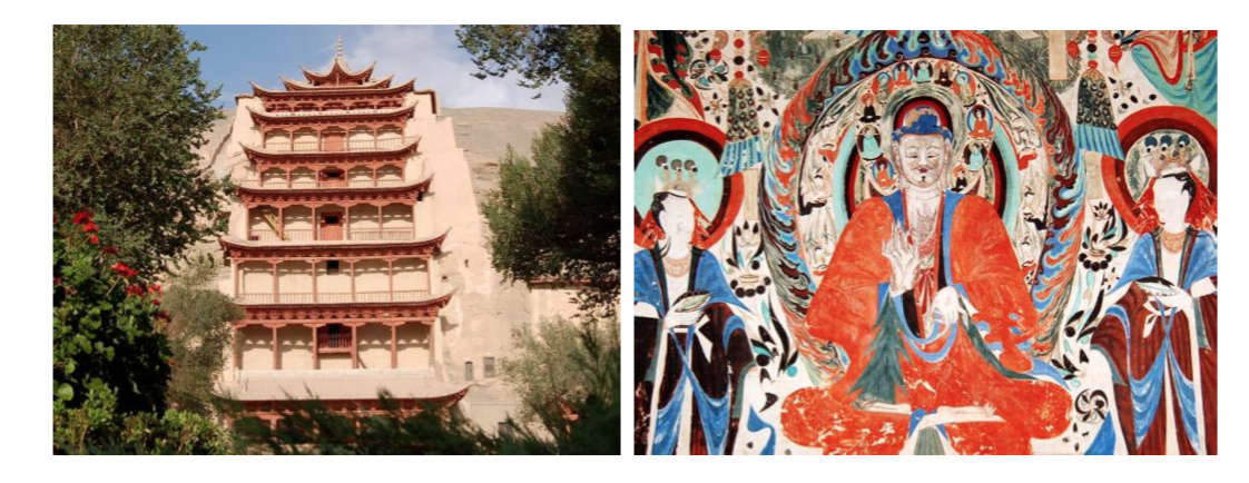 Dopo la prima colazione visita della fortezza di Jiayuguan e del museo annesso. Purtroppo negli ultimi anni la fortezza è stata pesantemente restaurata ed è stata trasformata in una sorta di Disneyland con tanto di figuranti vestiti da mongoli. Si continua con la visita dell’ultimo tratto della Grande Muraglia cinese che collegava il forte alla Hei Shan, la catena montuosa poco distante. Anche questo tratto della Grande Muraglia è stato pesantemente ristrutturato nel 1987. Il vasto panorama del deserto, la veduta dell’oasi di Jiayuguan e delle vette innevate ricompensano per la ripida salita. Si prosegue poi lungo una veloce autostrada, costruita recentemente, attraverso pianure desertiche fino a Dunhuang, oasi circondata da altissime dune e canyon rocciosi. Importantissimo nodo della Via della Seta, la città era conosciuta come una delle più importanti mete di pellegrinaggio nel mondo antico, paragonabile a Gerusalemme o alla Mecca. Breve escursione, a ridosso della città, sulle enormi dune di sabbia alle spalle del Lago della Luna Crescente. Purtroppo anche questo luogo negli ultimi anni è stato trasformato in una sorta di Luna Park, frequentato da comitive di cinesi che si lanciano dalle dune con gli slittini e attraversano il deserto con carovane di cammelli. Pensione completa. Pernottamento in hotel.