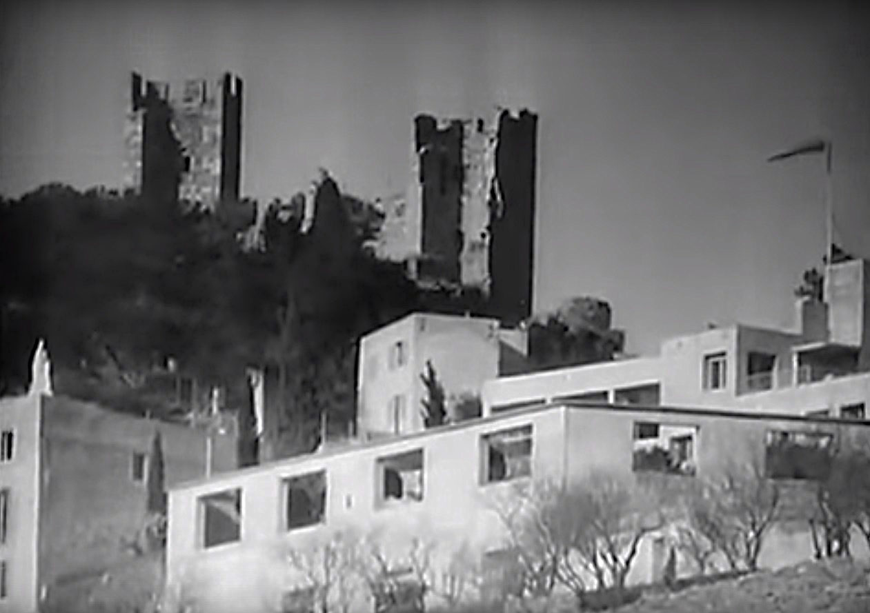 Artisti e pittori sono di casa dai loro anfitrioni. Sia nel palazzo di Parigi in Place des États-Unis, vicino all’Etoile, sia in questa dimora estiva edificata come un quadro cubista (i dadi, appunto). Il castello viene invece dal fatto che la villa rientra nel compound delle fortificazioni sulle pendici della collina. Le due torri superstiti le fanno da quinta mentre avanzi di muraglie si trovano in giardino. Nel 1930 e nel 1931 Charles dona alla moglie, come regalo di compleanno, un film, che contribuisce a realizzare finanziandone la produzione. Il primo è L’âge d’or di Luis Buñuel, il secondo Le sang d’un poète di Jean Cocteau, capisaldi del cinema d’avanguardia. Con Ray, i padroni di casa fanno ancora di più: si prestano come interpreti. Con il volto nascosto da una calzamaglia in modo da sembrare manichini metafisici, come nei quadri di De Chirico. Così come metafisico diventa lo spazio che li circonda. La piscina, le terrazze, i giardini sono trasformati dalla cinepresa di Ray in altrettanti quadri surrealisti.