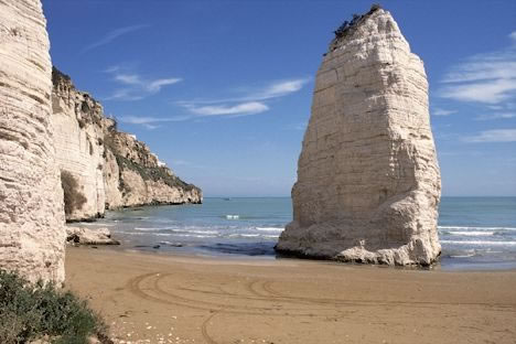 Da San Menaio a Vieste, attraverso la Foresta Umbra. A meta’ strada tra Rodi e Peschici, poco oltre San Menaio, si devia per Vico del Gargano. Superato il paese, la strada ripida, stretta e tortuosa, si snoda dapprima tra conche cultivate che, salendo di quota, si fanno sempre piu’ brulle e pietrose; poi, quasi all’improvviso, appaiono i fitti boschi di faggi, cerri, lecci, pini e roveri, alcuni dei quali secolari, della maestosa Foresta Umbra, cuore verde del Gargano, di proprieta’ demaniale. Raggiunto l’albero-rifugio e il casino dell’Azienda Forestale, l’asfalto si biforca; da un lato si scende verso Monte Sant’Angelo e Manfredonia, dall’altro si ripiega attraverso la parte piu’ suggestive della foresta, per innestarsi nuovamente, dopo 17 km di tornanti e serpentine, in un paesaggio di solenne bellezza, nella costiera s.s. 89, nel tratto di Peschici-Vieste.