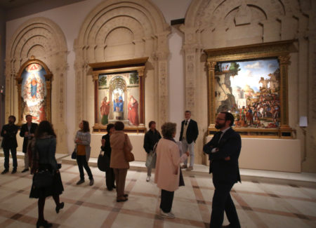 Il capolavoro è esposto con tutti gli onori in Gallerie d’Italia – Palazzo Leoni Montanari e ad accoglierlo, idealmente, trova il non meno magnifico Battesimo di Cristo in Santa Corona. Per l’occasione, a Palazzo Chiericati è giunto dalle collezioni di Palazzo Thiene il grande Cristo crocifisso. E’ oggetto di una mostra dossier tesa a narrare l’invenzione del paesaggio moderno e la stupefacente qualità pittorica di uno dei massimi rivoluzionari della storia dell’arte occidentale. Intorno alle tre opere di Bellini a Vicenza si è creato dunque un percorso tale da esaltare il ruolo di primo pittore italiano avuto dall’artista al suo tempo, vero unificatore in un unico linguaggio dei tanti dialetti artistici della penisola.