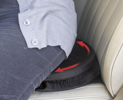Un oggetto utilissimo per tutti coloro che desiderano una comoda “spinta” per scendere dall’auto. Leggermente imbottito – abbastanza per essere comodo, ma non tanto da modificare l’altezza di chi vi si siede – il cuscino ruota sul suo supporto rigido richiedendo uno sforzo minimo alla persona seduta. Diametro cuscino cm 38, spessore cm 4,5