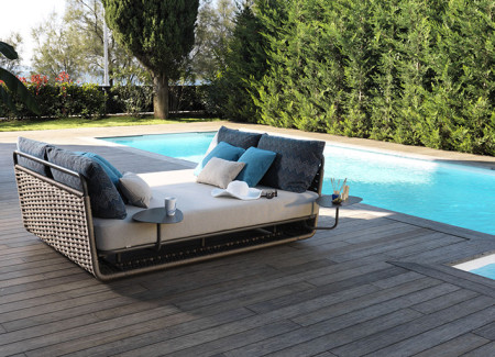 Color terra nella struttura in alluminio, assolutamente innovativa, con corda nautica Sand, Day Bed è il divano da esterni (7.686 euro nel modello senza baldacchino e telo parasole ) che arreda un giardino, un grande terrazzo, ma anche un patio. E, se serve, arretra fino al cuore della casa, per diventare letto accogliente per gli ospiti. E’ uno dei prodotti dell’azienda Roberti Rattan srl (31020 Corbanese di Tarzo Z.I. (Treviso) Italy Tel. +39.0438.933022 Fax +39.0438.933005 info@robertirattan.com), che a una quarantina di chilometri da Treviso, festeggia quest’anno i 55 anni di attività negli arredi per esterni e da giardino. Un’azienda italiana, dunque, con prodotti in linea con il design e il buon gusto italiano che piacciono ovunque nel mondo (la sua produzione si trova alle Hawaii e in California, a Malaga come a Tenerife). Un bell’oggetto da acquistare o da tenere momentaneamente nel libro dei desideri, se prima occorre procurarsi lo spazio dove collocarlo!