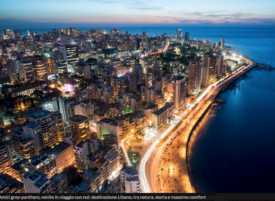 Partecipate anche voi, dal 20 al 27 ottobre prossimi, al primo viaggio grey-panthers. Il nostro non è solo un itinerario interessantissimo, ma è una modalità di viaggio all’insegna del buon gusto e del massimo comfort. Iscrivetevi subito, seguendo questo link o, meglio ancora, telefonando allo 02 34934528: chiedete di Giorgio per iscrivervi al viaggio grey panthers in Libano! C’è tempo fino al 20 settembre. A presto! vp