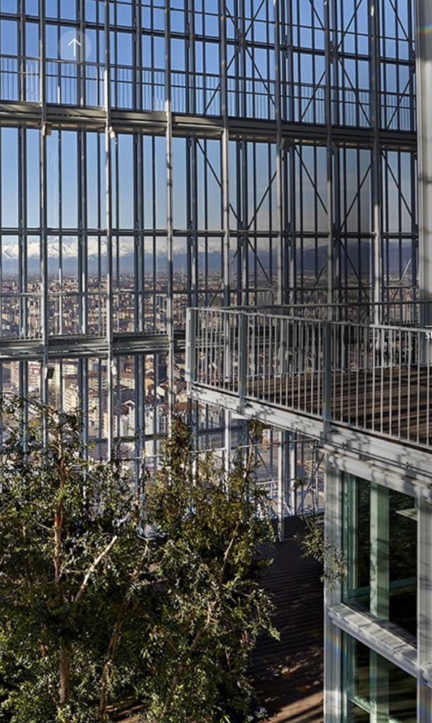 Il grande volume della serra bioclimatica è forse l’elemento maggiormente significativo dell’intero grattacielo e occupa gli ultimi tre piani utili dell’edificio (35-37), dal pavimento a 140 metri al di sopra del piano stradale fino alla copertura fatta a shed in acciaio e vetro alla quota di circa 155 metri. Costituisce un coronamento originale per un grattacielo, essendo uno spazio verde, trasparente e pubblico: una sorta di piazza sospesa sopra la città, posta nella parte più pregiata dell’edificio, dove si collocano di solito funzioni private e di rappresentanza.