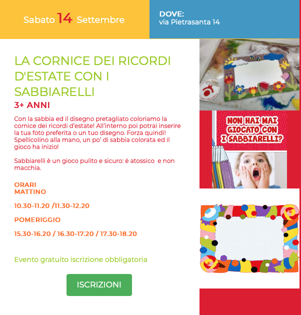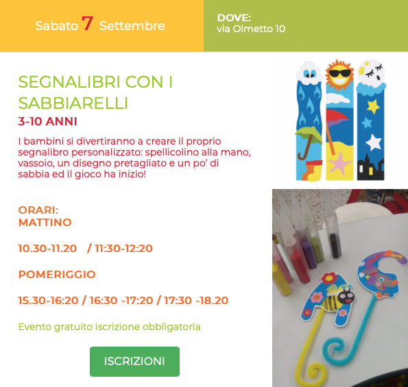 GLI APPUNTAMENTI DEL MESE: prepariamo insieme, con i sabbiarelli, i segnalibri per la scuola dei nipotini