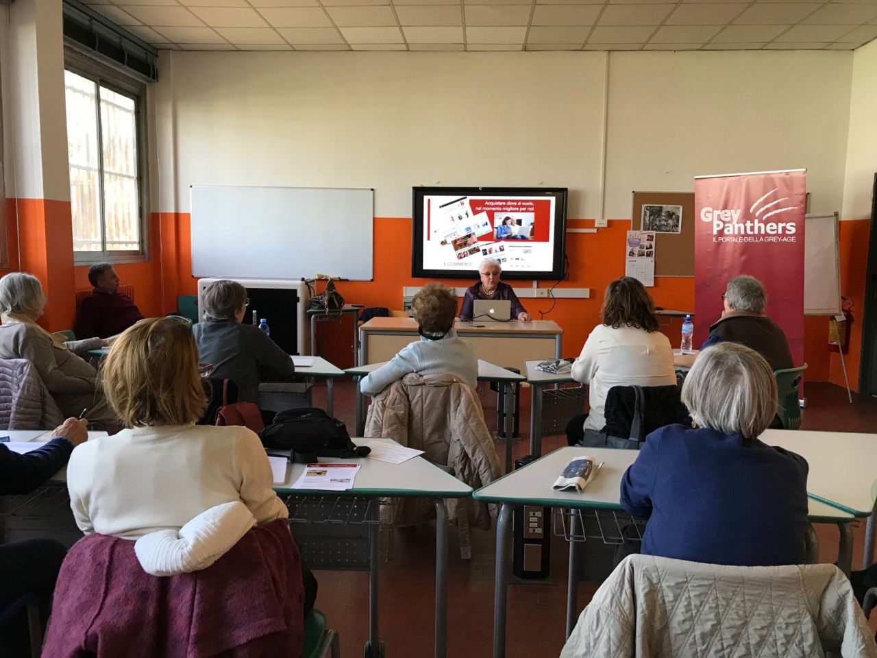 Durante il workshop si sono alternati alla lavagna interattiva i ragazzi grey panthers