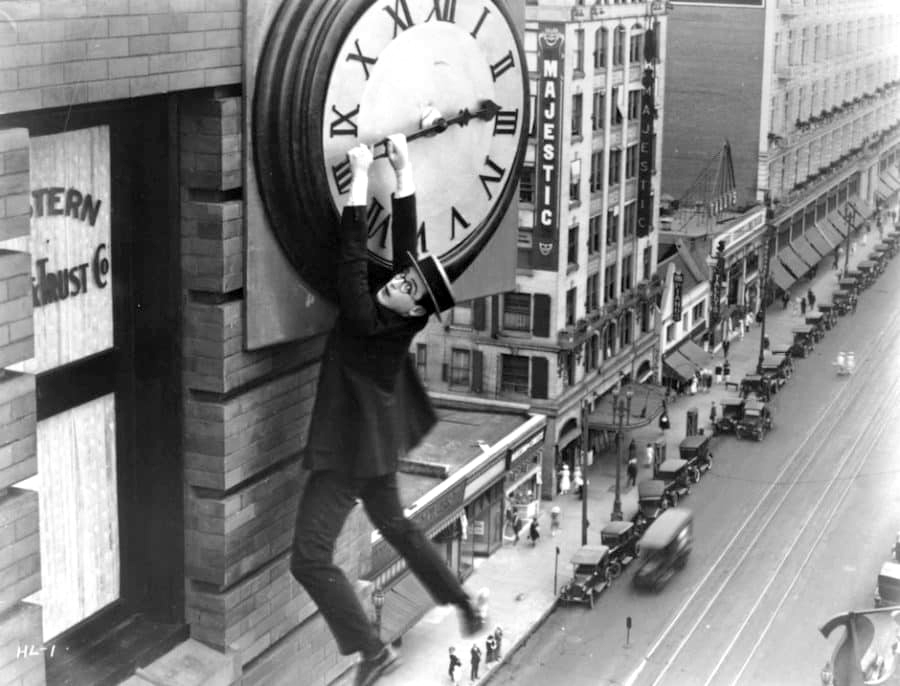 Contrariamente a tutti gli altri pionieri del cinema muto Lloyd non pescava nei bassifondi della società, tra i diseredati, i vagabondi o la piccolissima borghesia travolta dalla Grande Depressione. Paglietta sulle ventitrè, occhiali di tartaruga, giacchetta e cravattino, il suo personaggio è il classico bravo ragazzo della porta accanto, il collegiale, il giovane impacciato e distratto. Imperturbabile come Keaton, scattante come Chaplin, svagato come Semon, riesce spesso a riunire in sé il meglio della comicità tutta facciale e fisica del cinema muto. Compresa la lotta contro gli oggetti più disparati che gli si rivoltano contro. Preferisco l’ascensore(Safety Last, 1923), Il re degli straccioni(For Heaven’s Sake, 1926), A rotta di collo(Speedy, 1928) sono tra i suoi film più popolari, specchio umoristico degli Roaring Twenties(i ruggenti anni ’20). In ogni caso Lloyd rappresenta il campione indiscusso dell’ottimismo yankee capace di prevalere su ogni avversità. Con l’avvento del sonoro anche la sua parabola artistica tramonta rapidamente, ma, al contrario di molti altri divi senza parola, riesce a mantenere una certa popolarità fino al termine dei suoi giorni e, soprattutto, ad amministrare con oculatezza, senza intaccarlo, il cospicuo patrimonio accumulato.