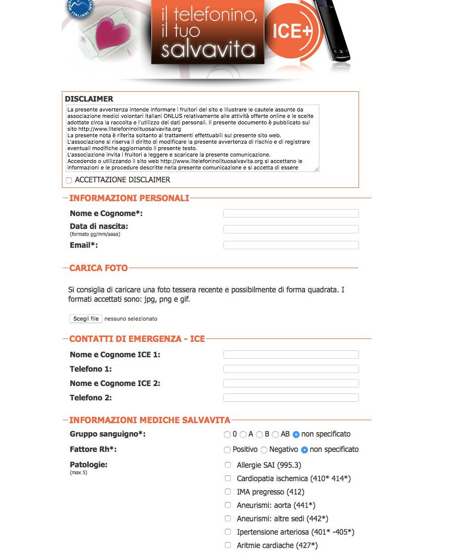 Il cellulare è diventato un oggetto che ci accompagna in ogni istante della nostra quotidianità. Da questa riflessione è partita l’Associazione Medici Volontari Italiani – Onlus per lo sviluppo dell’applicazione, una Web APP, “Il Telefonino, il tuo Salvavita”. In caso di emergenza, è possibile mettere a disposizione dei soccorritori i dati medico-sanitari, le cosiddette informazioni salvavita, ed al contempo consente di poter contattare una o più persone grazie ai numeri ICE. Acronimo che sta per “In Case of Emergency”.