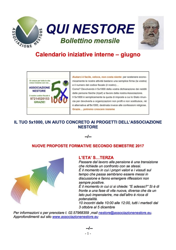 Corsi, proposte formative, e poi la Festa d’estate, il NestoreCafè, le uscite e gli incontri dei vari gruppi culturali dell’Associazione Nestore.
