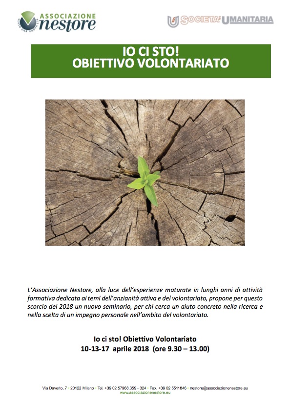 Tutte queste domande troveranno la loro risposta al prossimo corso organizzato da Nestore “Io ci sto – Obiettivo Volontariato” nelle giornate del 10-13-17 aprile (9.30 – 13.00). Docente sarà il dott. Mauro Vaiani.
