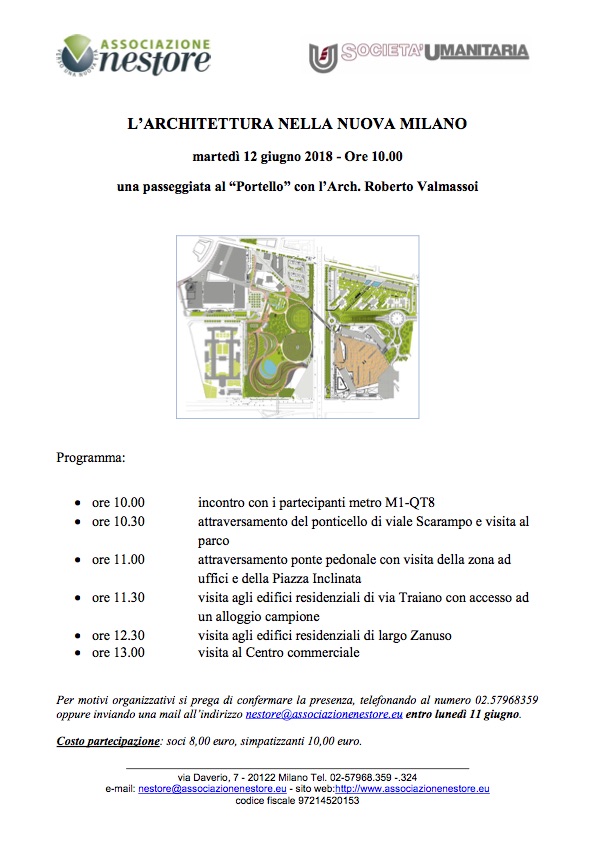 Associazione Nestore organizza una serie di incontri nei luoghi che in questi anni hanno cambiato il volto della nostra città. Abbiamo chiamato questi incontri “Architettura della nuova Milano”; durante i quali visiteremo: City Life, Portello, Bicocca e Porta Nuova. Quattro grossi interventi che hanno trasformato urbanisticamente queste zone. Durante queste passeggiate esplorative saremo accompagnati dall’Architetto Roberto Valmassoi, socio di Nestore.