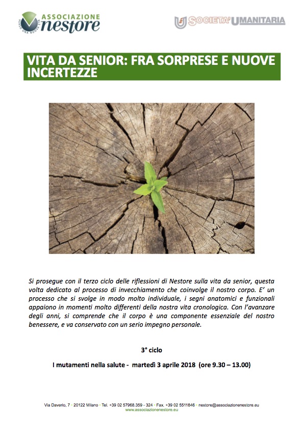 Prosegue con il terzo ciclo delle riflessioni di Nestore sulla vita da senior, questa volta dedicato al processo di invecchiamento che coinvolge il nostro corpo. E’ un processo che si svolge in modo molto individuale, i segni anatomici e funzionali appaiono in momenti molto differenti della nostra vita cronologica. Con l’avanzare degli anni, si comprende che il corpo è una componente essenziale del nostro benessere, e va conservato con un serio impegno personale.