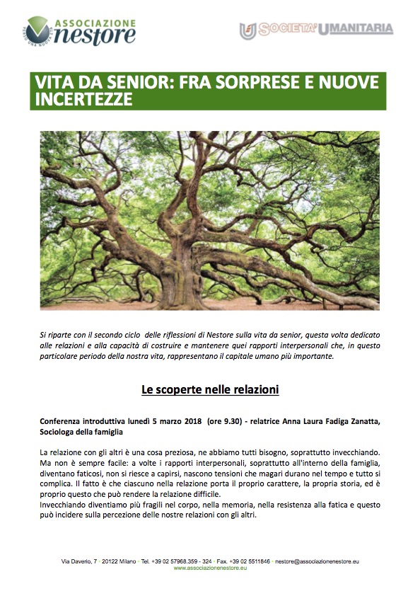 Si riparte con il secondo ciclo delle riflessioni di Nestore sulla vita da senior, questa volta dedicato alle relazioni e alla capacità di costruire e mantenere quei rapporti interpersonali che, in questo particolare periodo della nostra vita, rappresentano il capitale umano più importante.