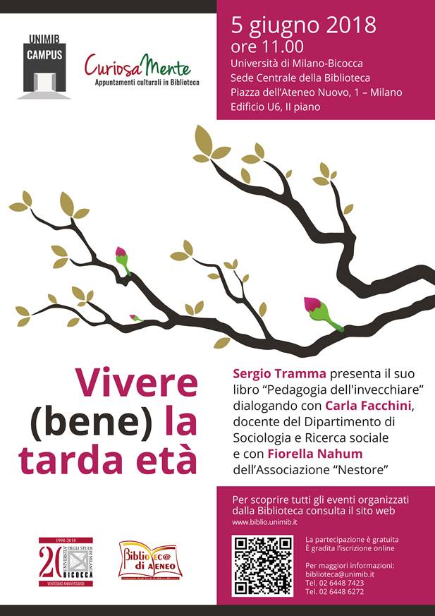 Martedì 5 giugno presso l’Università di Milano – Bicocca, Sede Centrale della Biblioteca Sergio Tramma, membro del Comitato Scientifico dell’Associazione Nestore, presenta il suo libro “Pedagogia dell’invecchiare” dialogando con Carla Facchini, docente del Dipartimento di Sociologia e Ricerca sociale, e con Fiorella Nahum dell’Associazione Nestore.