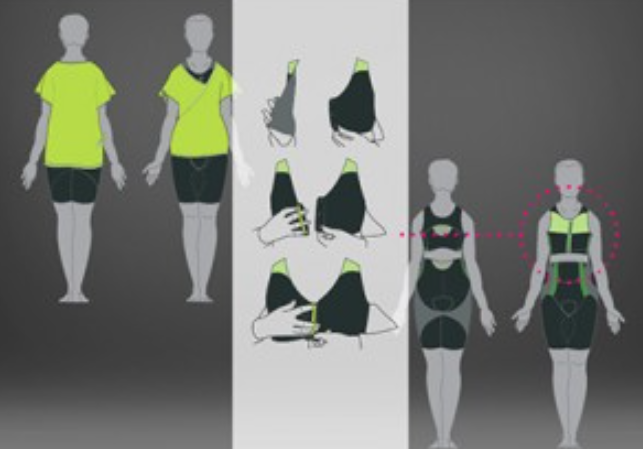Per tutte queste ragioni abbiamo pensato a degli abiti studiati appositamente per i Senior, tenendo conto dei bisogni e delle esigenze di un pubblico adulto anche dal punto di vista fisico e percettivo, progettando così abiti comodi, versatili, capaci di proteggere il fisico senza costringerlo ma garantendogli sempre la più totale libertà. Abbiamo progettato dei tessuti e delle finiture che presentano determinate texture tattili capaci di agire a livello cutaneo proprio dove avviene il lavoro muscolare profondo, in modo da amplificare le sensazioni provate durante l’attività fisica e quindi riuscire a far coscientizzare l’esercizio e la motricità all’utente. Oltre ad un approccio tecnico e percettivo sui materiali abbiamo deciso di integrare direttamente nelle fibre dei tessuti dei sensori flessibili capaci di rilevare battiti, pressione, temperatura corporea e lavoro muscolare, e di inviare continui feedback ad unico device portatile, in modo da avere sempre sotto controllo il proprio corpo durante la pratica sportiva e non solo.