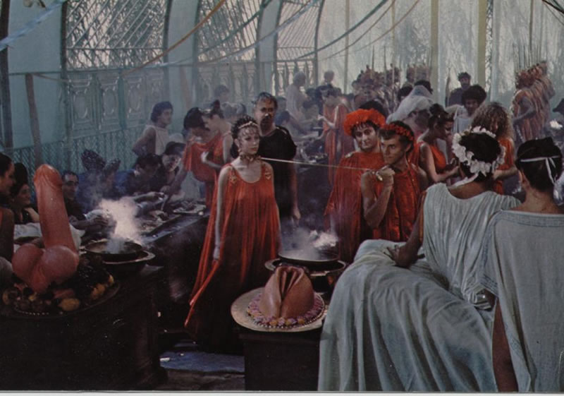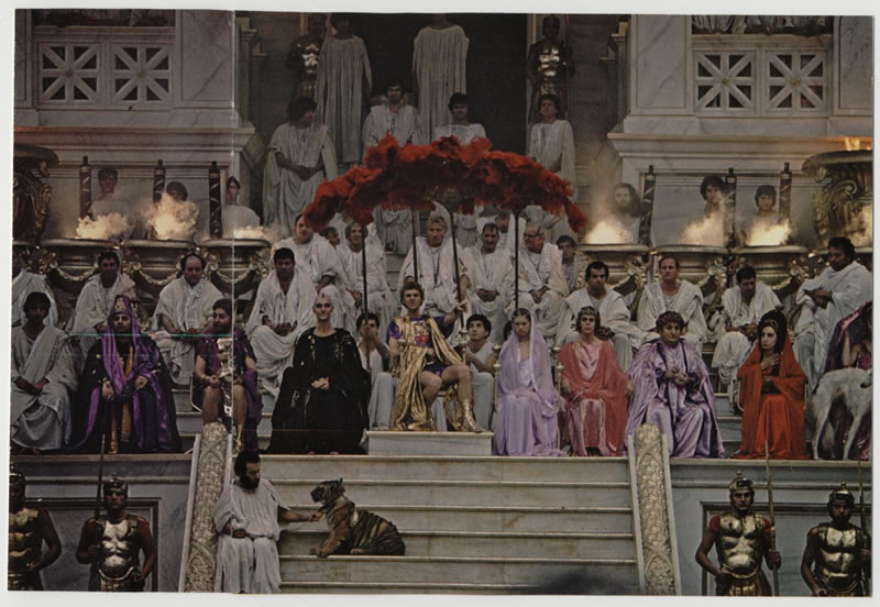 Dopo aver lanciato nel 1965 la rivista “per soli uomini” Penthouse, in diretta concorrenza con la rivale Playboy, l’editore italoamericano Bob Guccione, forte del successo editoriale e finanziario della sua impresa, decide di investire nell’industria cinematografica. Dapprima con quote di minoranza in film come Quella sporca ultima meta (The Longest Yard, 1974 di Robert Aldrich) e Il giorno della locusta (The Day of the Locust, 1975 di John Schlesinger), quindi proponendosi come finanziatore in prima persona di un’opera che rispecchiasse il core business del suo impero editoriale, ossia un film “per adulti”, ma dall’erotismo patinato. La scelta cade così su un soggetto dello scrittore Gore Vidal (1925-2012) che si era occupato a più riprese della vita dell’imperatore romano Caligola e che nel 1959 aveva collaborato alla sceneggiatura del film Ben Hur di William Wyler. Stabilito di girare in Italia, nella produzione viene coinvolto Franco Rossellini, figlio di Renzo sr., il musicista fratello di Roberto. Il regista prescelto è Tinto Brass, reduce dal controverso successo di Salon Kitty (1975), film che, nelle intenzioni, univa critica storica ed erotismo. Con Caligola, così il film si intitola in questa fase, Brass vorrebbe fare qualcosa di analogo. Anche perché per la realizzazione viene messo insieme un cast tecnico e artistico di notevole livello: per esempio il montatore Nino Baragli (collaboratore anche di Pasolini e Sergio Leone) e lo scenografo Danilo Donati (collaboratore di Pasolini, Lizzani, Fellini, Zeffirelli, Lattuada, Bolognini…). Tra gli attori figurano gli allora giovani emergenti Malcolm McDowell (reduce dal successo di Arancia meccanica, 1971, nel ruolo principale), Helen Mirren (Cesonia) e Teresa Ann Savoy (Drusilla), i mostri sacri Peter O’Toole (specialista in ruoli storici, da Lawrence d’Arabia a Enrico II Plantageneto nel film Il leone d’inverno, 1968, nel ruolo di Tiberio) e John Gielgud (senatore Nerva) oltre agli italiani Adriana Asti (Ennia), Paolo Bonacelli (Cherea), Leopoldo Trieste (Caricle), Guido Mannari (Macrone) e molti altri. Vengono però anche scritturate numerose Penthouse Pets (equipollenti delle Conigliette di Playboy) incluse alcune pornostar come Anneka Di Lorenzo (Messalina), Lori Kay Wagner (Agrippina), Bonnie Dee Wilson e altre.