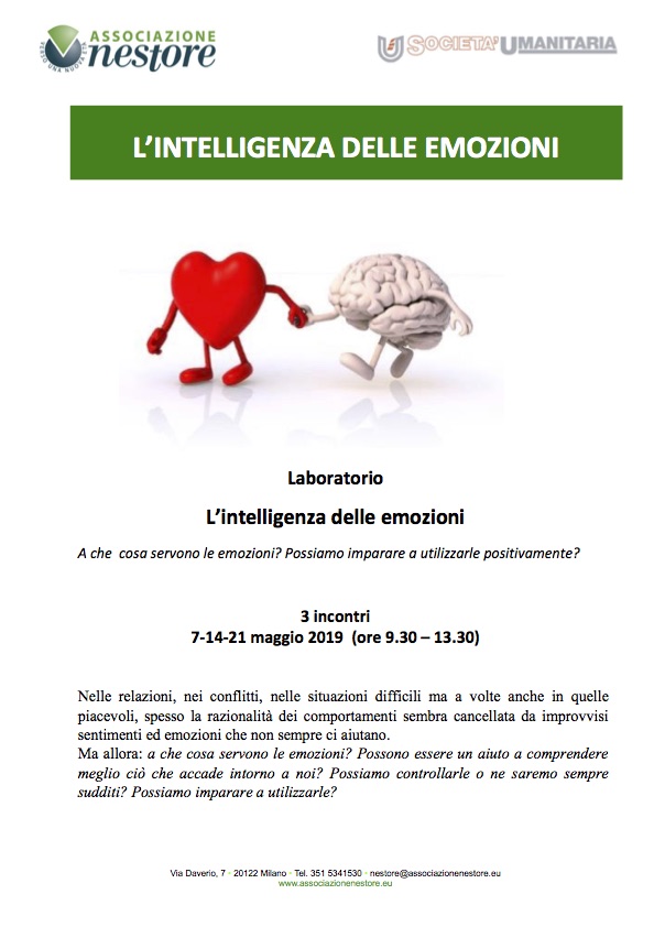 Il laboratorio che Nestore propone in tre incontri nei giorni 7-14-21 maggio dalle 9.30 alle 13.30 vuole aiutare a rispondere a questa e ad altre domande,  facendoci capire il valore delle emozioni, insegnandoci a riconoscerle e ad accettarle e aumentando infine la  nostra capacità di utilizzarle positivamente.