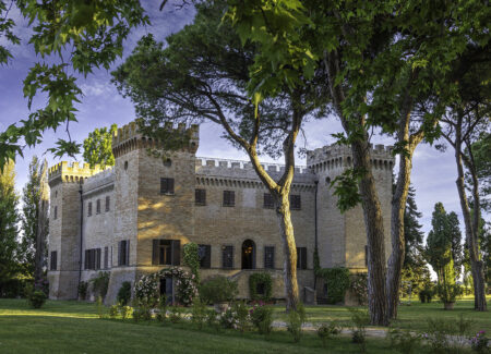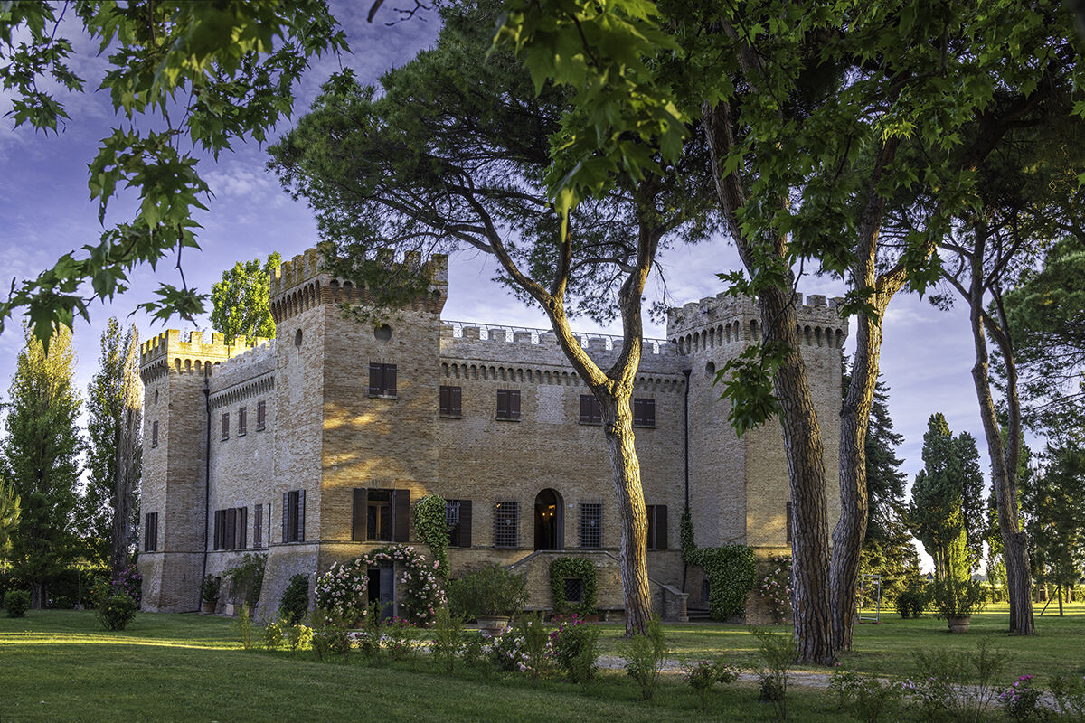 Nato come dimora di caccia dei Malatesta, Castello Benelli a Rimini oggi conserva arredi e decorazioni dell’epoca. All’esterno, l’impianto originale di giardino-campagna, con pini marittimi secolari, platani, olmi, cipressi e una ricca collezione di rose