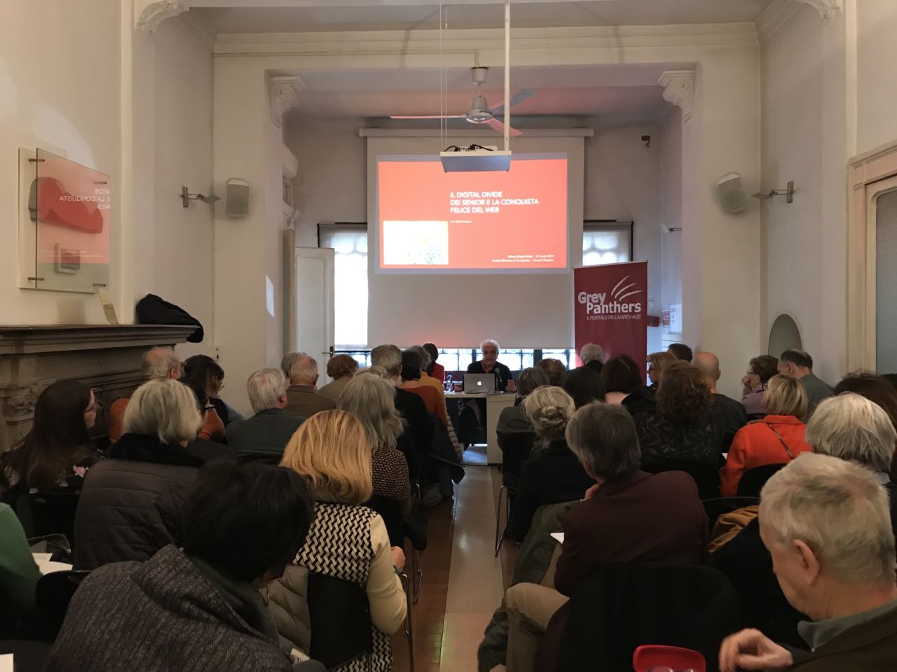 Dal 13 al 17 marzo 2019 Grey Panthers ha partecipato con tre eventi all’edizione annuale della Milano Digital Week, per testimoniare il lungo decennale lavoro che la nostra testata ha compiuto per convincere gli Over 50 che essere parte attiva nell’era digitale significa migliorare la propria qualità di vita, essere davvero cittadini digitali, consapevoli dei propri diritti e determinati a vederli riconosciuti e soddisfatti. Come i propri bisogni del resto.